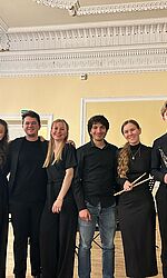 Nicolas Kuhn, künstlerischer Mitarbeiter sowie Leiter des Hochschulensembles für Neue Musik, und die Studierenden Amílcar Baeza Reyes (Akustische Gitarre, Master Neue Musik), Jessie Chen (Gesang, Master Neue Musik), Samuel Dietze (Jazz/Rock/Pop Schlagzeug), Tereza Horáková (Violine), Shuyu Hsieh (Klavier), Anna Makarenko (Oboe), Julia Starczewska (Violoncello) und Alexandros Voutyras (Horn) konnten durch die Förderung des "Erasmus Blended Intensive Programme" im Februar 2025 an dem "contemPLAY - contemporary music festival" an der Lithuanian Academy of Music and Theatre in Vilnius teilnehmen.