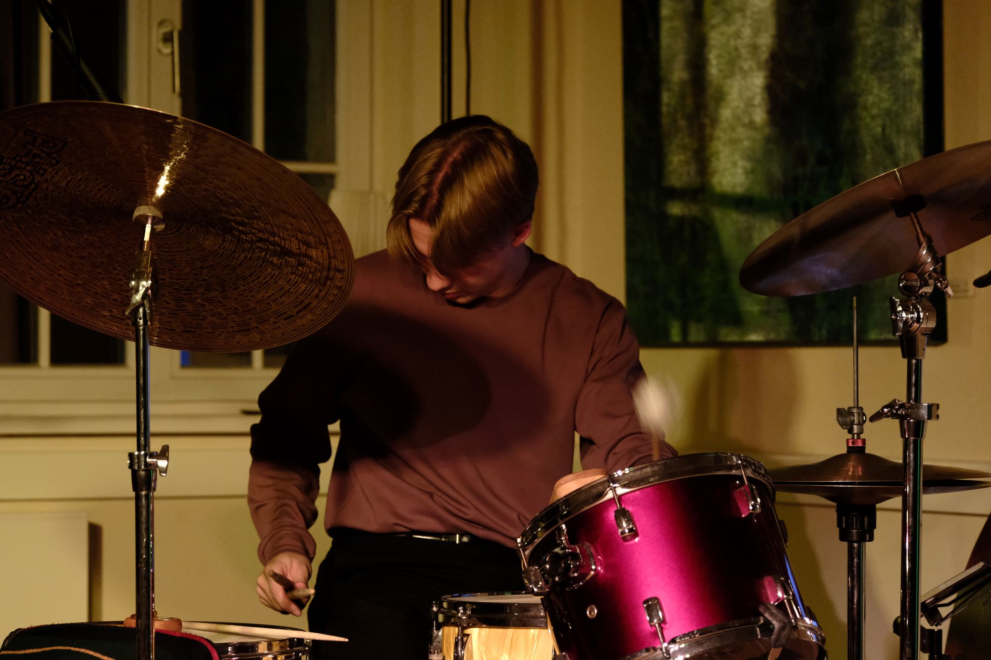 Samuel Dietze (*2002, Hoyerswerda) ist Schlagzeuger und Komponist, dessen Arbeit Genrebegriffe grundlegend hinterfragt, stilistische Zuschreibungen aufbricht und sich bewusst gegen Kategorisierung richtet. Seit 2021 studiert er Schlagzeug in der Fachrichtung Jazz/Rock/Pop an der HfM Dresden. Geprägt wurde er sowohl von Mentoren wie Prof. Michael Griener, Christian Lillinger, Diego Piñera, Prof. Sebastian Merk und Prof. Günter Baby Sommer als auch von seiner intensiven Auseinandersetzung mit Neuer Musik. In diesem Kontext wirkte er performativ unter anderem bei der Sinfonietta Dresden sowie bei Uraufführungen im Rahmen des ContemPLAY Festivals in Vilnius (Litauen) mit.