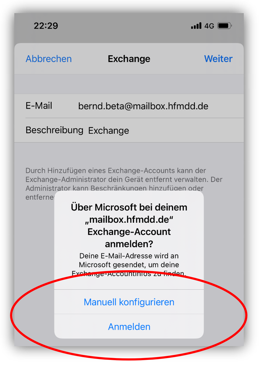 1.6. Wählen Sie "Manuell konfigurieren" um anschließend das Passwort eintragen zu