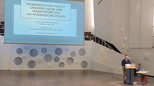 Am 27. November nahm die HfM Dresden am bundesweiten Aktionstag KUNST. MACHT. MENSCHLICHKEIT. der Rektorenkonferenz deutscher Musikhochschulen teil. Ziel war es, ein sichtbares Zeichen gegen Machtmissbrauch und Diskriminierung zu setzen und offene, respektvolle Hochschulkultur zu fördern. Von 10:00 bis 19:30 Uhr bot die Hochschule ein vielfältiges Programm: Vorträge zu Machtmissbrauch, Workshops zu gewaltfreier Kommunikation, verantwortlicher Beziehungsgestaltung und Beziehungsdynamiken im Einzelunterricht sowie offene Beratungen durch das Vertrauensteam. Den Abschluss bildete ein Wandelkonzert, in dem Studierende und Lehrende Ergebnisse einer anonymen Umfrage künstlerisch reflektierten. Weiterlesen