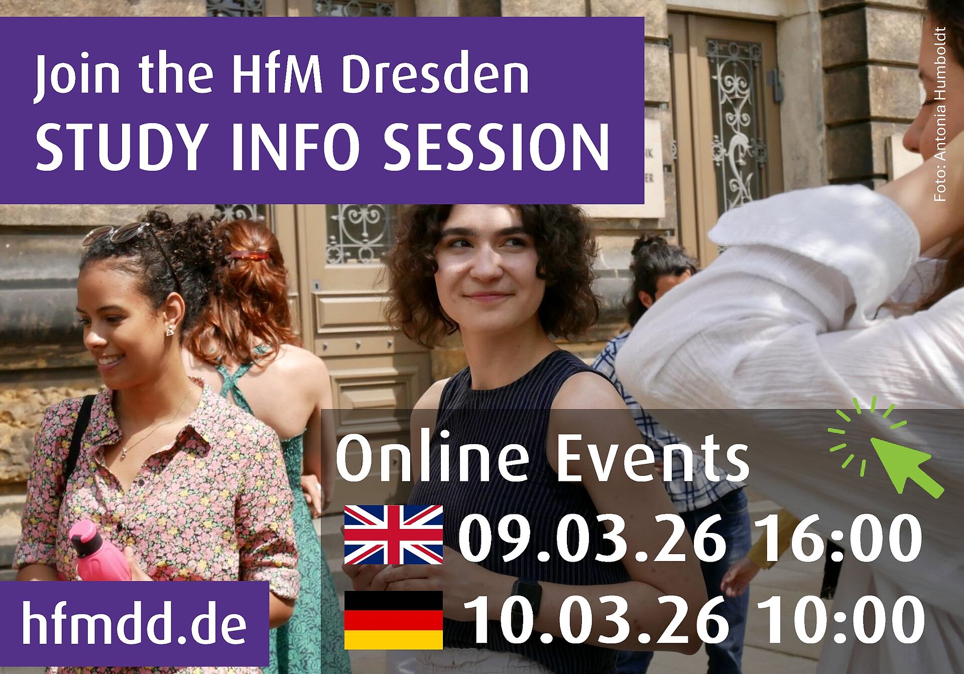 Herzlich willkommen auf der Bewerbungsseite der HfM Dresden. Ausführliche Studiengangsinformationen finden Sie hier.